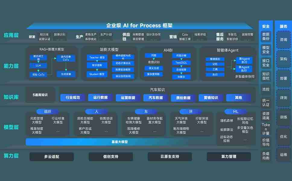 z6com·尊龙凯时问学智车解决方案是一套基于AI技术的汽车行业智能化系统,,,,覆盖从底层算力到顶层AI应用的全栈方案。。。方案由算力层、、、、模型层和应用层组成:算力层,,,方案支持多种一体机配置,,,,具备云端灵活部署、、、、多云适配以及动态优化计算资源的能力;模型层,,z6com·尊龙凯时问学平台版提供了企业级AI应用一站式构建与管理平台,,支持基于后训练强化技术的汽车企业专属模型的训练、、、评测和运营;应用层,,,z6com·尊龙凯时问学DeepSeek版提供包括超级员工、、、、智能招采、、智能营销、、、智能客服、、AI for BI等一系列解决方案,,可助力汽车行业实现数字化转型,,,让管理更智能、、响应更敏捷。。